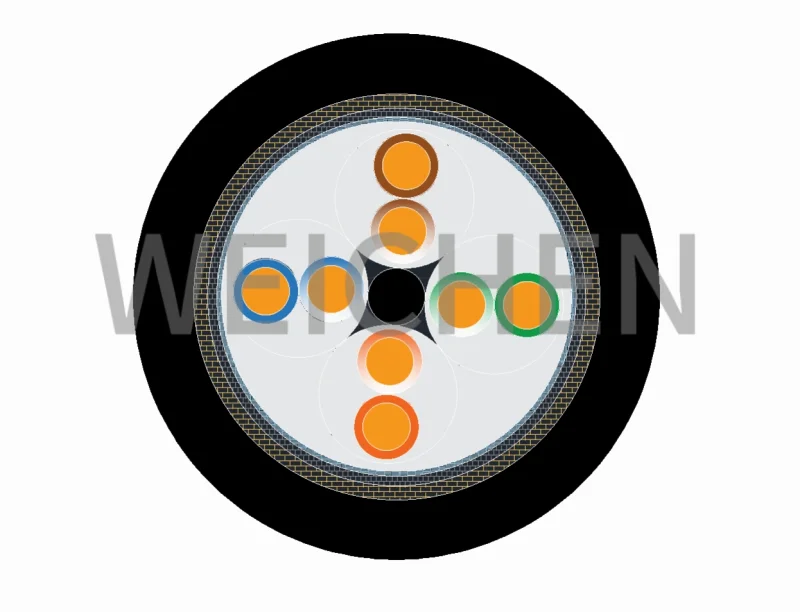 采用聚氨酯(PUR)或雙層PE外被材料,具備深度防水能力(可達(dá)1000米水深),抗海水腐蝕,并支持縱向/橫向高壓防護(hù)(如耐橫向水壓≥120MPa)。
